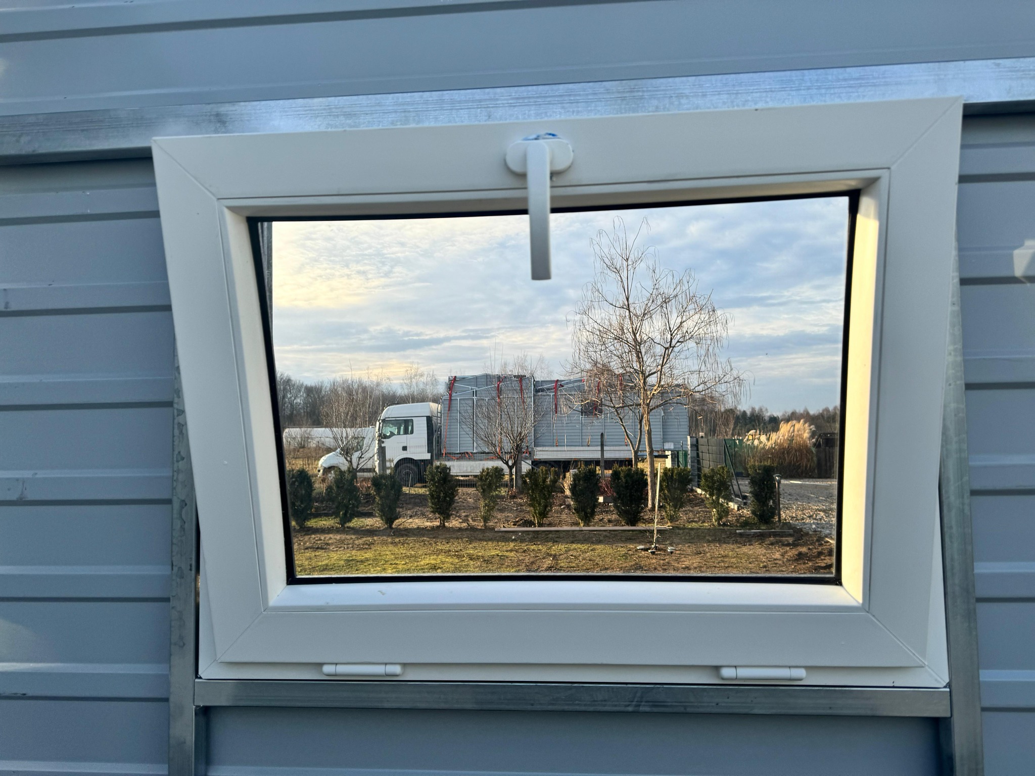 Wyposażenie: Garaż posiada trzy bramy uchylne Grafit T17, drzwi wejściowe Grafit T17 oraz okno 60 x 80 Grafit.