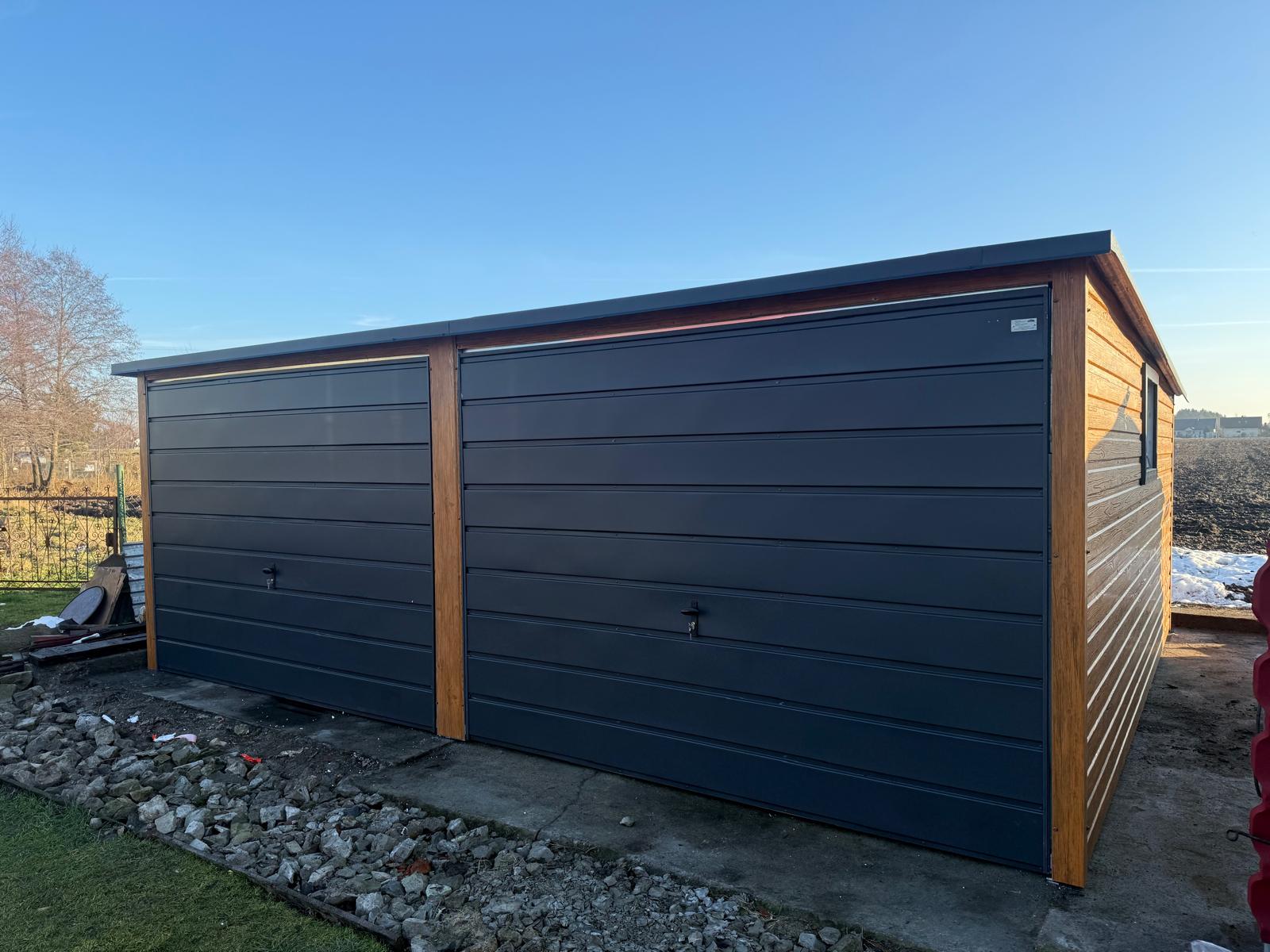 Garaż blaszany dwustanowiskowy 6x6m spad na tył Złoty Dąb – montaż i cena