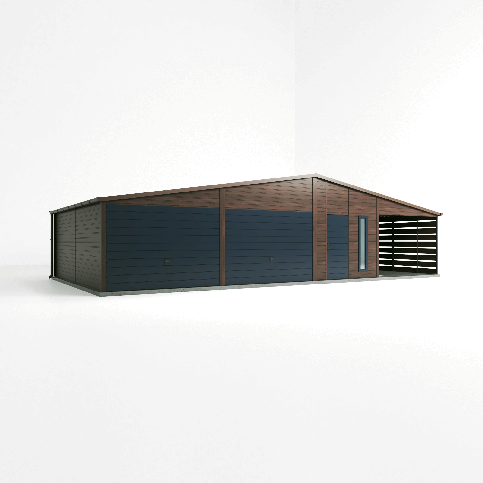 Zamów garaż blaszany drewnopodobny PREMIUM 9x6m z wiatą 3x6m ażurową już dziś!